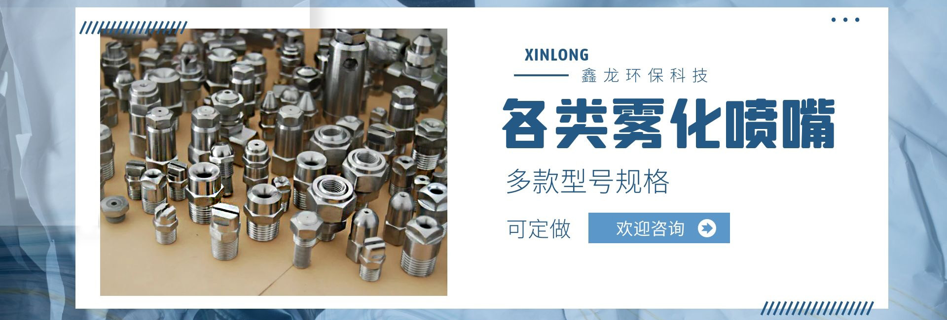 深圳市鑫龍環(huán)保科技有限公司是專業(yè)從事各類噴嘴研制和開發(fā)的廠家,技術(shù)力量雄厚,生產(chǎn)工藝先進(jìn),檢測手段齊全,管理制度嚴(yán)格,產(chǎn)品質(zhì)量穩(wěn)定可靠。產(chǎn)品種類多達(dá)上萬種,適用于涂裝處理、環(huán)保、線路板、電子電力、汽車制造、家電制造、造紙業(yè)、紡織業(yè)、防火等行業(yè);我公司產(chǎn)品不僅為國內(nèi)多家大中型企事業(yè)選用,還配套外銷日本、美國、東南亞等國家和地區(qū)。我們具有本行業(yè)前衛(wèi)的噴嘴制造設(shè)施,在我們裝備完善的噴嘴實(shí)驗(yàn)室,可以進(jìn)行各種類型噴嘴的測試研究,以優(yōu)化噴霧系統(tǒng)的性能。我公司提供專業(yè)技術(shù)、應(yīng)用和售后服務(wù),幫助用戶選擇適合的噴嘴,并保持噴嘴在良好條件下運(yùn)行。從噴嘴選擇指導(dǎo),到量身定制的設(shè)計(jì),直到噴霧顆粒的測試分析,在每個(gè)訂單中都包含了我們好的技術(shù)支持,用戶反映:我司顯著的特點(diǎn)是銷售工程師在幫助用戶降低成本、減少加工和維修時(shí)間,降低工業(yè)用水和化學(xué)劑消耗等方面有著非常豐富的經(jīng)驗(yàn),使用戶可以更經(jīng)濟(jì)、更有效的解決實(shí)際問題!我們繼續(xù)堅(jiān)持專業(yè)是金的理念,制造好的噴嘴是我們永遠(yuǎn)的追求和努力!